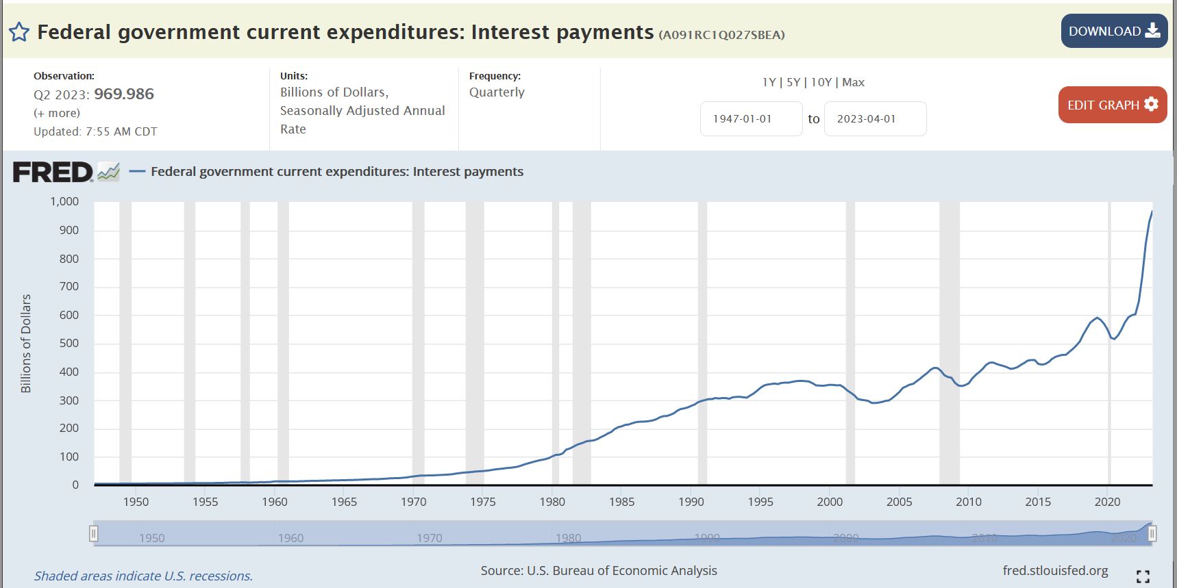 If we keep borrowing at current rates, we could see over $37